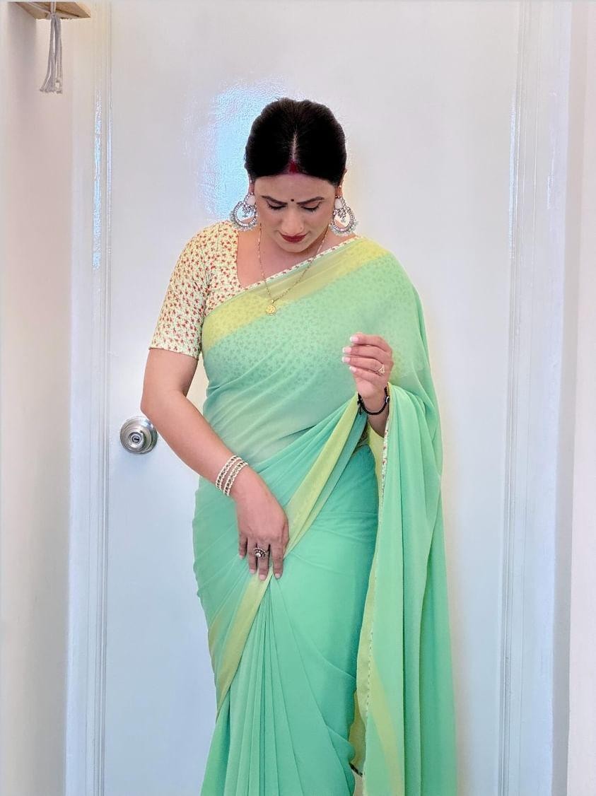 • This saree will present you more glamorous and beautiful to your peers than ever. These sarees are most preferred for the festive because of the lightweight, they can be worn in all four seasons.
