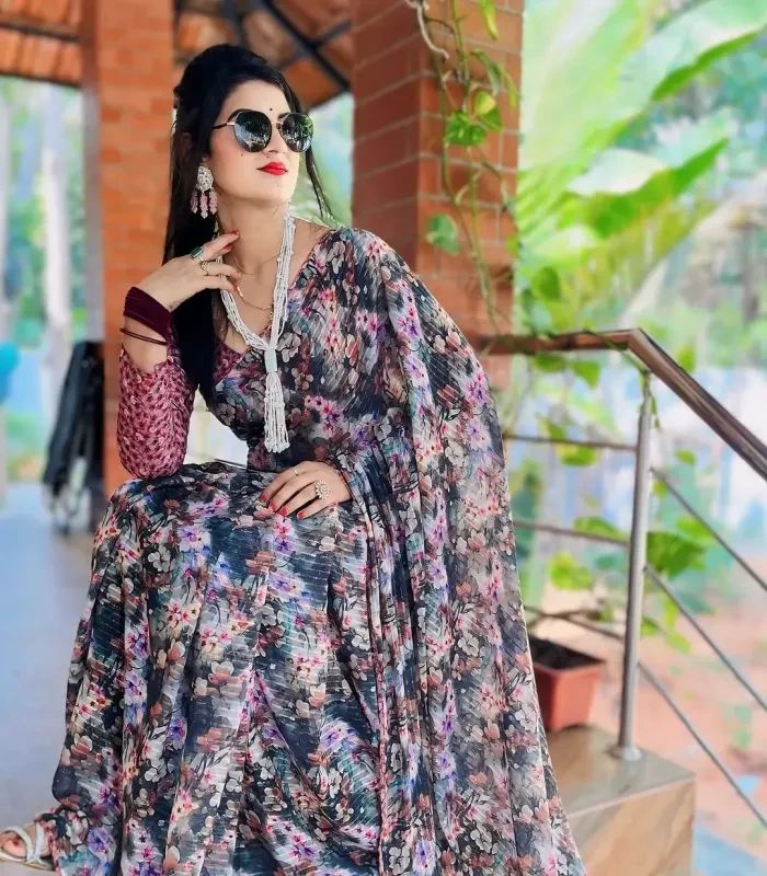 • This saree will present you more glamorous and beautiful to your peers than ever. These sarees are most preferred for the festive because of the lightweight, they can be worn in all four seasons.