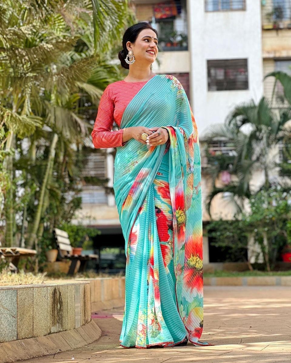 • The saree has a beautiful contemporary design and can be worn to festive occasions where you want to flaunt your style with this outfit.
