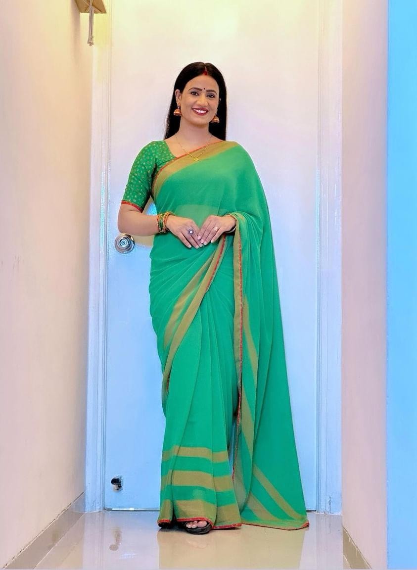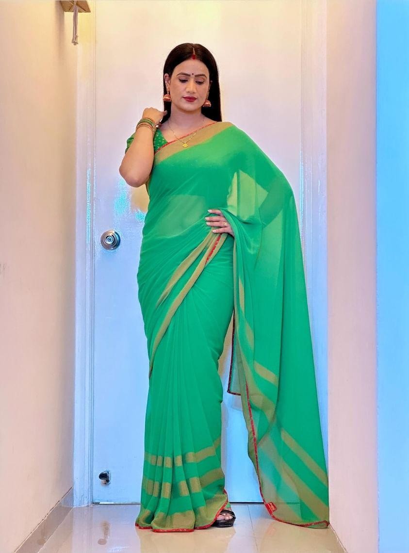 • This saree will present you more glamorous and beautiful to your peers than ever. These sarees are most preferred for the festive because of the lightweight, they can be worn in all four seasons.