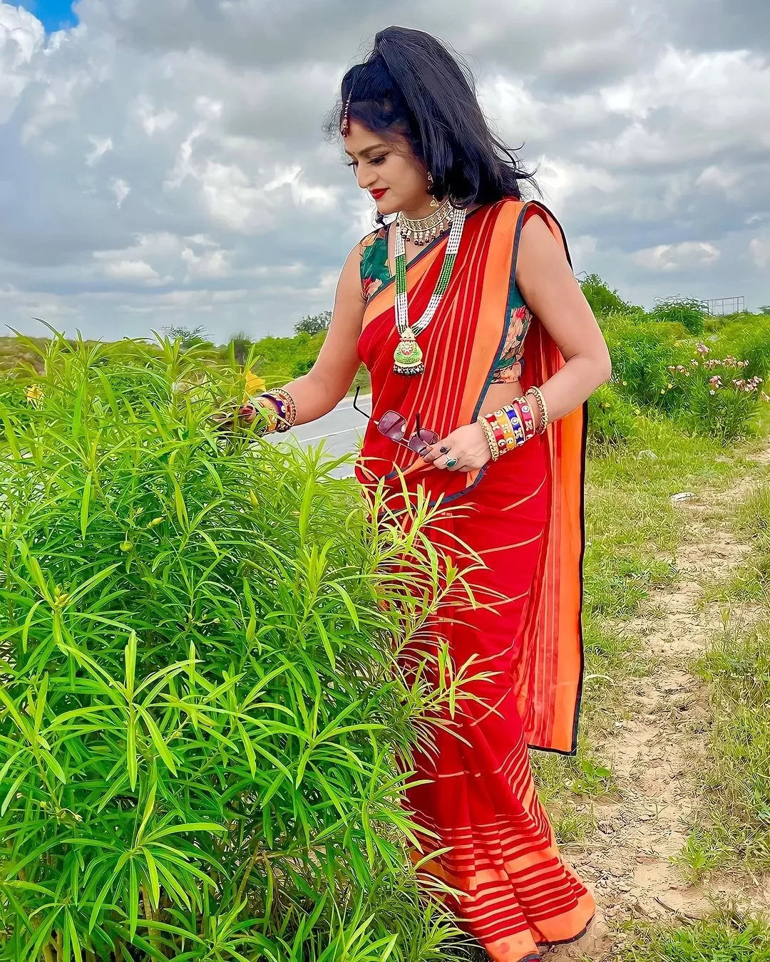 • This saree will present you more glamorous and beautiful to your peers than ever. These sarees are most preferred for the festive because of the lightweight, they can be worn in all four seasons.